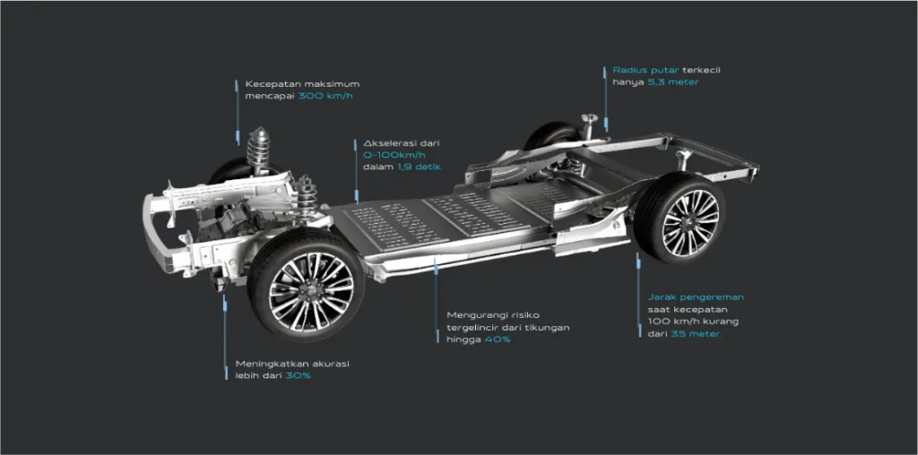 Desain modern dan tangguh berpadu dengan sistem keselamatan berstandar internasional, menghadirkan mobil listrik yang tak hanya bergaya, tetapi juga andal di berbagai situasi.